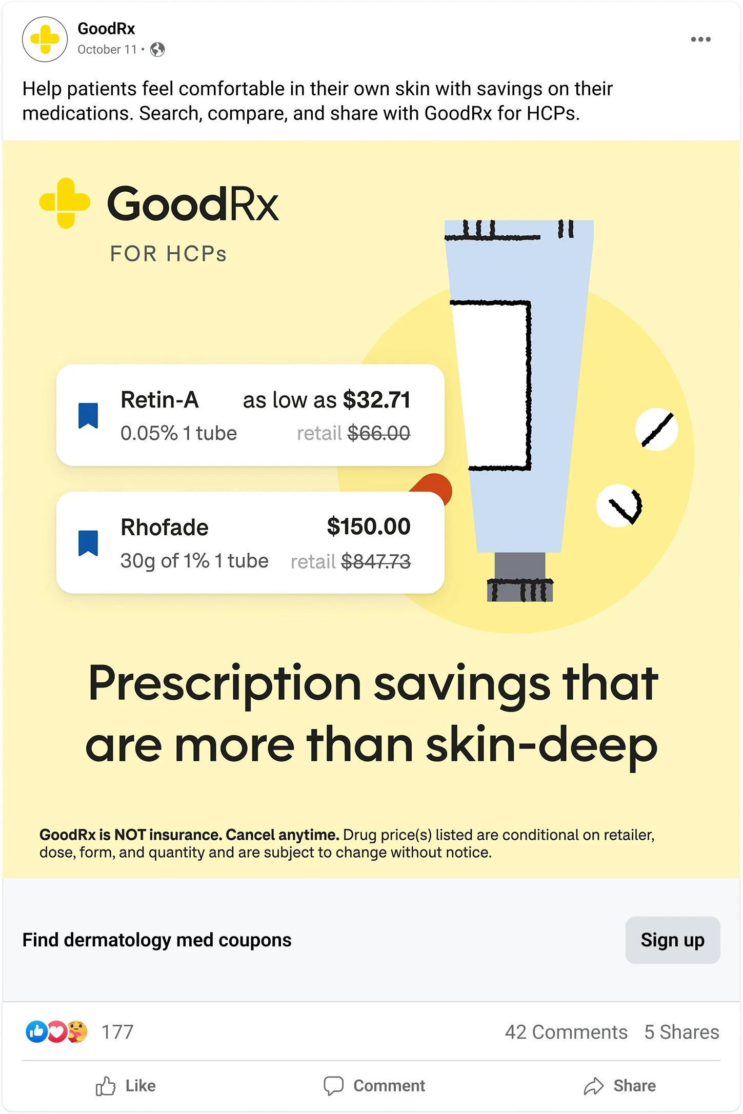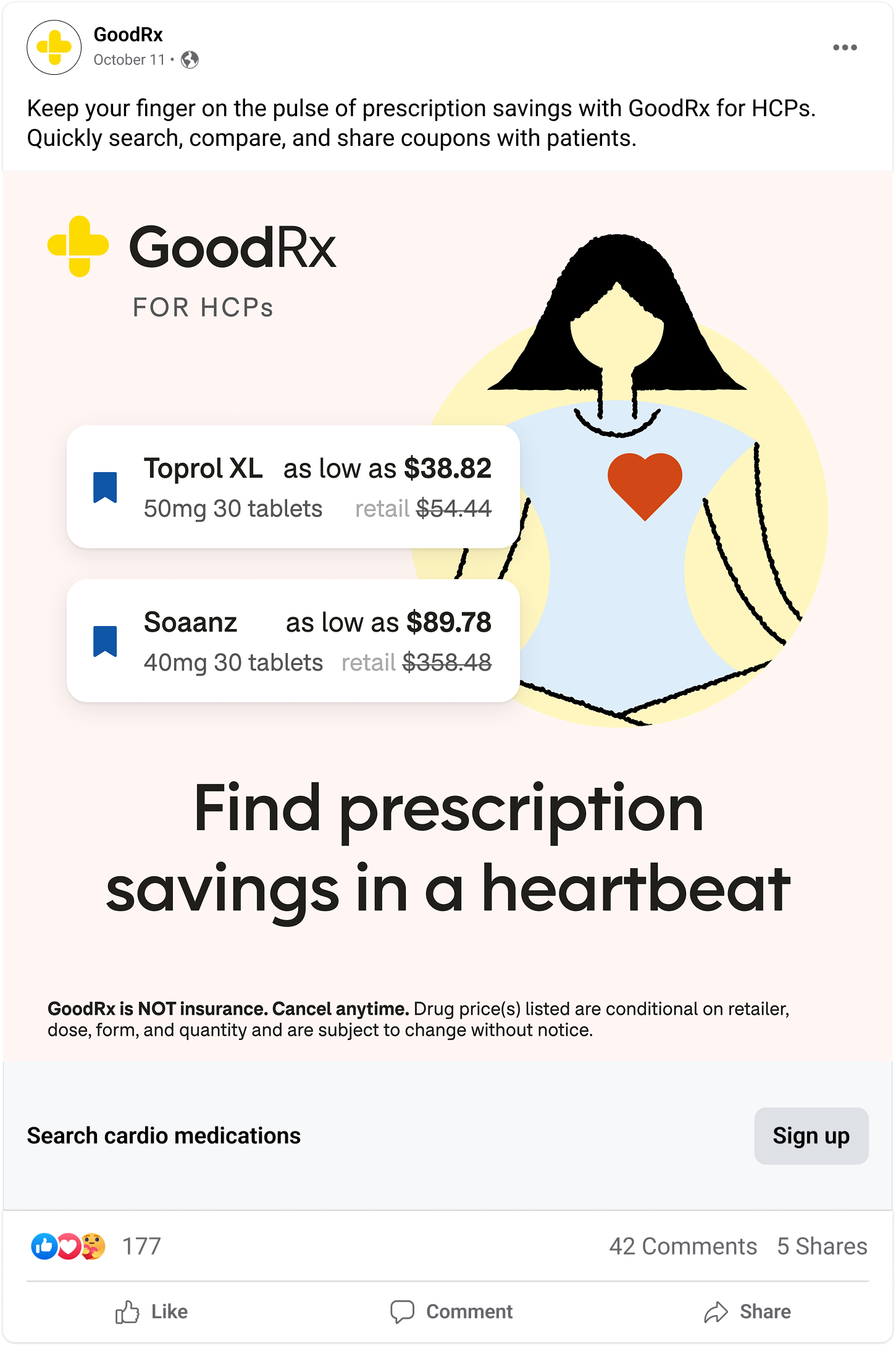 This campaign drove GoodRx account signups from healthcare professionals. The clients loved the copy, appreciating the playful push in tone.